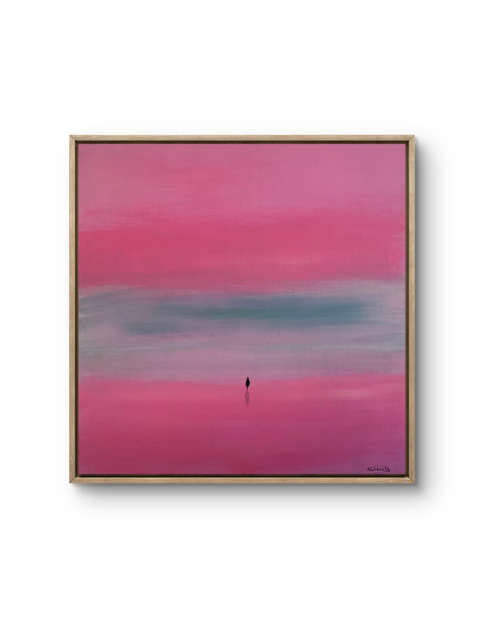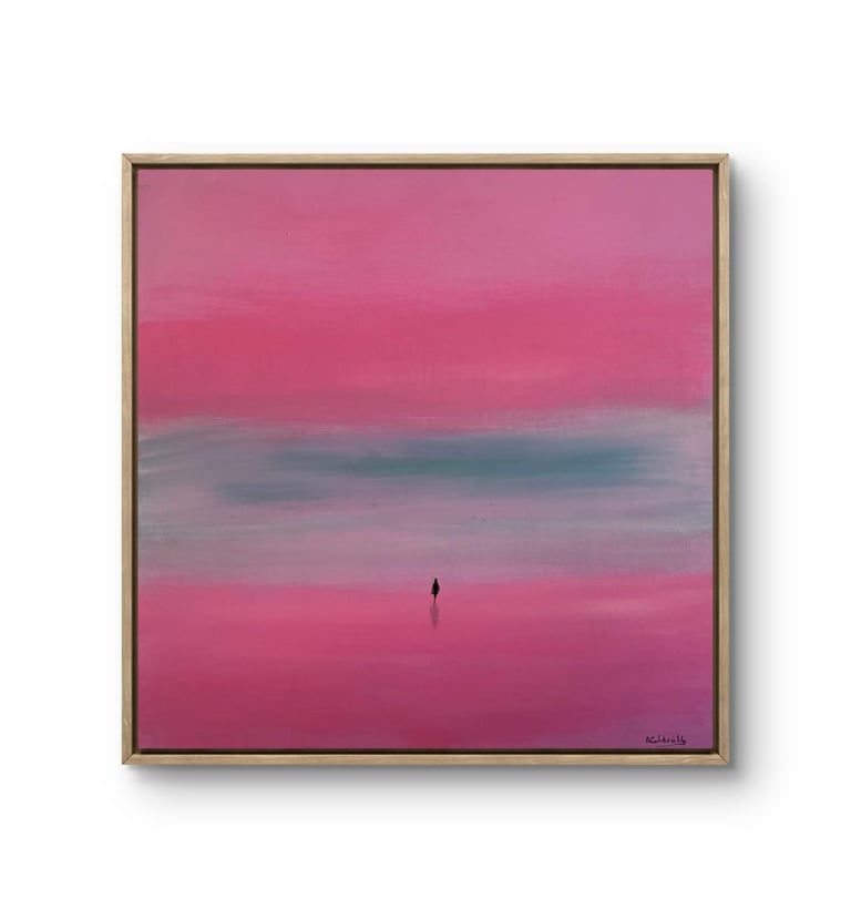Este quadro moderno possui uma paleta suave de rosa e azul, ideal para ambientes contemporâneos.